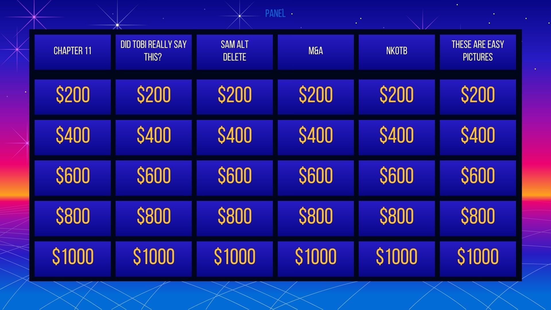 A quiz show. Here are some notes from our producer Vinny O’Brien.